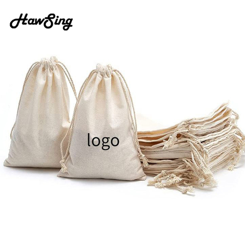 Bolsa con cordón de lona de algodón de gran capacidad, bolsa de embalaje impresa personalizada