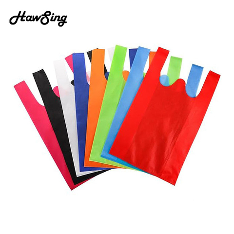 Bolsa de chaleco biodegradable ecológica para supermercado, bolsas de compras plegables reciclables no tejidas para publicidad de logotipos